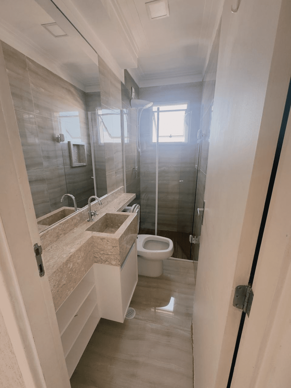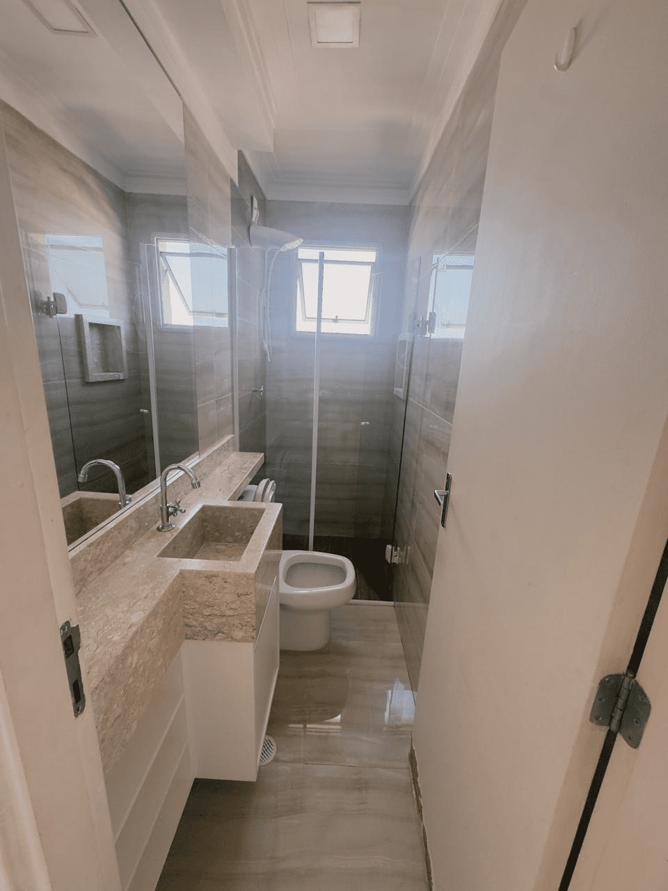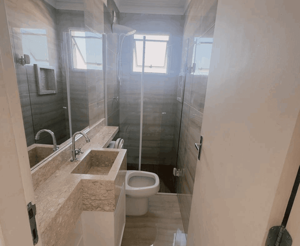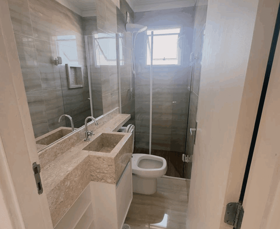 – 1 banheiro com gabinete e box em vidro