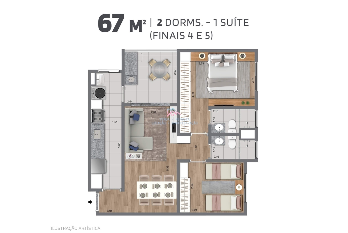 Área Privativa 59 M2